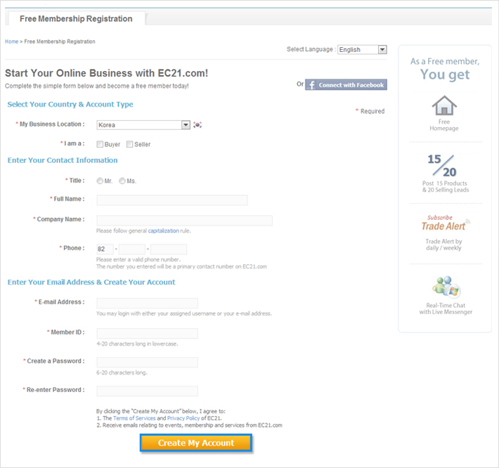 Number of inquiries to send per day (max.) 20, 40, 60. Start your online business with ec21.com! Information about trade pro membership provided by ec21.com. Our network has 2,500,000 members worldwide, over 5 million visits and 15 million page views every month. Search buyer information for premium members and send inquires. All trade pro members may apply tradeverify, authentication and verification service by . All trade pro members may apply tradeverify, authentication and verification service by . Target worldwide buyers in seconds; If paying by credit card, your membership will be upgraded automatically after the payment is processed. However, as a free member, you can still use the below . · select your country & account type * required · enter your contact information · enter your email address & create your . Complete the free registration form and click create my account. Access 3 million global buyers;